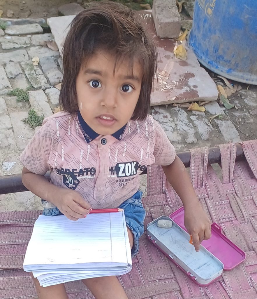 AddressVillage Hirnoti, The family is very poor and haivng 4 children. Only 2 of them study and rest cannot study due to limited earning of the family. A child is very anxious to come and study in school.